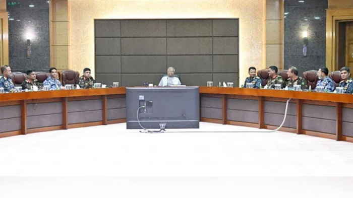 সভার শুরুতে প্রধান উপদেষ্টা দেশের বিভিন্ন প্রয়োজনে সশস্ত্র বাহিনীর গৌরবোজ্জ্বল ও দায়িত্বশীল ভূমিকার কথা উল্লেখ করেন।