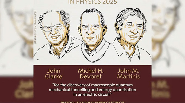 এ বছর পদার্থবিজ্ঞানে নোবেল পুরস্কার পেয়েছেন তিন মার্কিন বিজ্ঞানী—জন ক্লার্ক, মাইকেল ডেভোরেট এবং জন মার্টিনিস। ম্যাক্রোস্কোপিক কোয়ান্টাম মেকানিক্যাল টানেলিং ও ইলেকট্রিক সার্কিটে এনার্জি কোয়ান্টাইজেশন নিয়ে যুগান্তকারী গবেষণার স্বীকৃতি হিসেবে তাদের এ পুরস্কার দেওয়া হয়েছে।