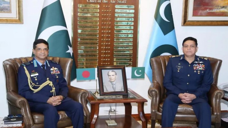 বৈঠকে পাকিস্তান বিমানবাহিনী প্রধান এয়ার চিফ মার্শাল জাহির আহমেদ বাবর সিধু ও বাংলাদেশ বিমানবাহিনী প্রধান এয়ার চিফ মার্শাল হাসান মাহমুদ খান