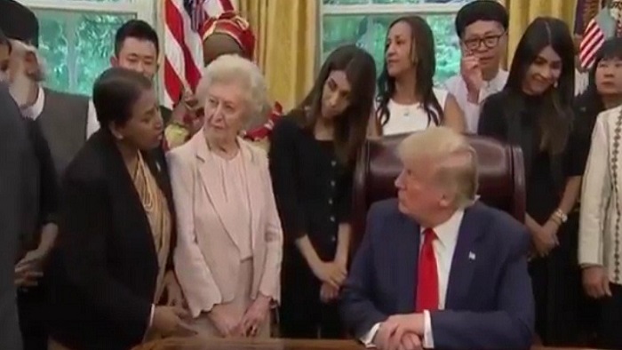 প্রেসিডেন্ট ডোনাল্ড ট্রাম্প বুধবার বিভিন্ন ধর্মের ২৭ জনকে মানুষকে ডেকেছিলেন তাদের দুর্ভোগের কথা শোনার জন্য। সেখানে মায়ানমার, নিউজিল্যান্ড, ইয়েমেন, চায়না, কিউবা, ইরিত্রিয়া, নাইজেরিয়া, তুরস্ক, ভিয়েতনাম, সুদান, আফগানিস্তান, নর্থ কোরিয়া, শ্রীলঙ্কা, পাকিস্তান জার্মানি, বাংলাদেশ সহ আরো কয়েকটি দেশের ব্যক্তিরা উপস্থিত ছিলেন।