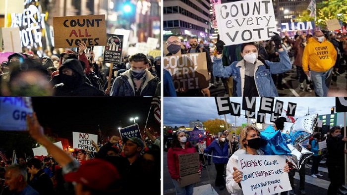 ভোট গণনা নিয়ে উত্তেজনা চরমে, যুক্তরাষ্ট্রের বিভিন্ন শহরে বিক্ষোভ