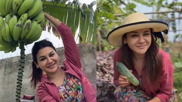 ভিডিওতে দেখা যায়, একার লতানো গাছ থেকে শসা তুলছেন, আরেকবার কলার থোড়া হাতে নিয়ে উচ্ছ্বাস প্রকাশ করছেন জয়া। নিজের শ্রমের ফল চোখের সামনে বড় হয়ে ওঠার তৃপ্তি রয়েছে তার হাসিতে।