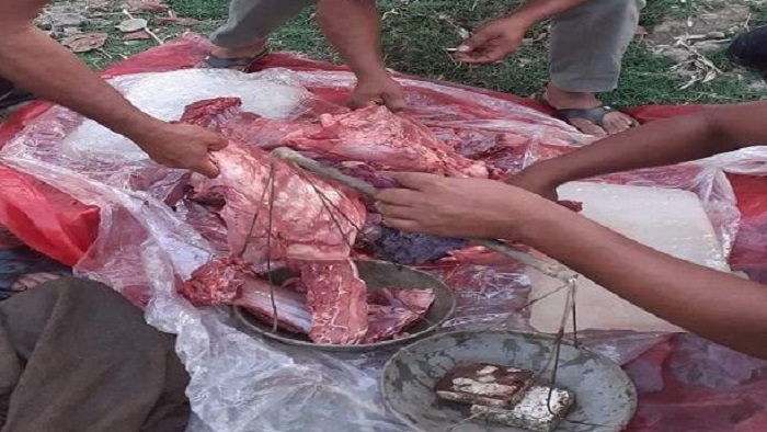 পরে স্থানীয়দের সহায়তায় নৌকায় তল্লাশি চালিয়ে হরিণের মাংস ও হরিণ ধারার সরঞ্জাম উদ্ধার করা হয়। এরপর স্থানীয় বাজারে থাকা উপস্থিত লোকজন দোকানীদের পাল্লায় ৪২ কেজি হরিণের মাংস মেপে দেন পুলিশ সদস্যদের।