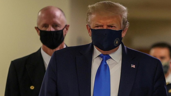মার্কিন যুক্তরাষ্ট্রের প্রেসিডেন্ট ডোনাল্ড ট্রাম্প অবশেষে প্রকাশ্যে মাস্ক পরলেন। শনিবার ওয়াশিংটনের বাইরে ওয়াল্টার রিড সামরিক হাসপাতালে আহত সৈনিক এবং স্বাস্থ্যকর্মীদের দেখতে যান তিনি। এসময়ে হাসপাতালের করিডোর ধরে তাকে মাস্ক পরে আসতে দেখা যায়। এ নিয়ে প্রথমবারের মতো তা পরলেন তিনি।