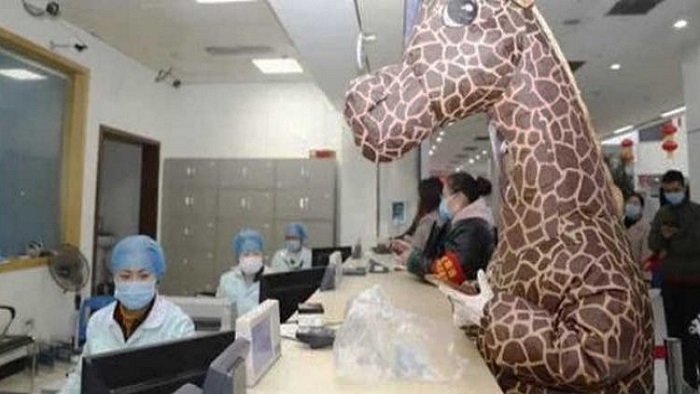 দেশটির দক্ষিণ-পশ্চিম প্রদেশ সিচুয়ানের লুঝোর এক হাসপাতালে ফোলানো জিরাফ পোশাক গায়ে চাপিয়ে হাজির হন তিনি। এক ভিডিওতে নিজেকে হি নামে পরিচয় করিয়ে দিয়েছেন ওই নারী। তিনি নিজেই সেটা আপলোড করেন।