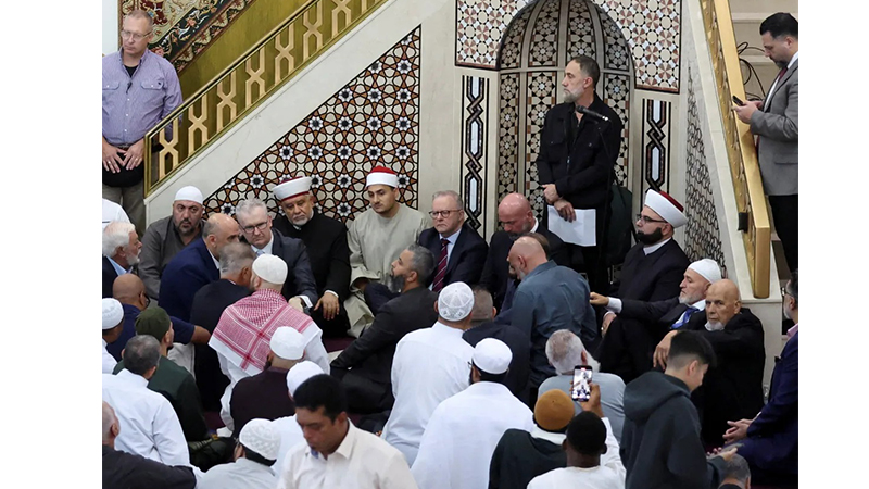 অস্ট্রেলিয়ার সিডনিতে লাকেম্বা মসজিদ পরিদর্শনে গিয়ে মুসল্লিদের একাংশের তোপের মুখে পড়েন প্রধানমন্ত্রী অ্যান্টনি অ্যালবানিজ। ছবি: এএফপি।
