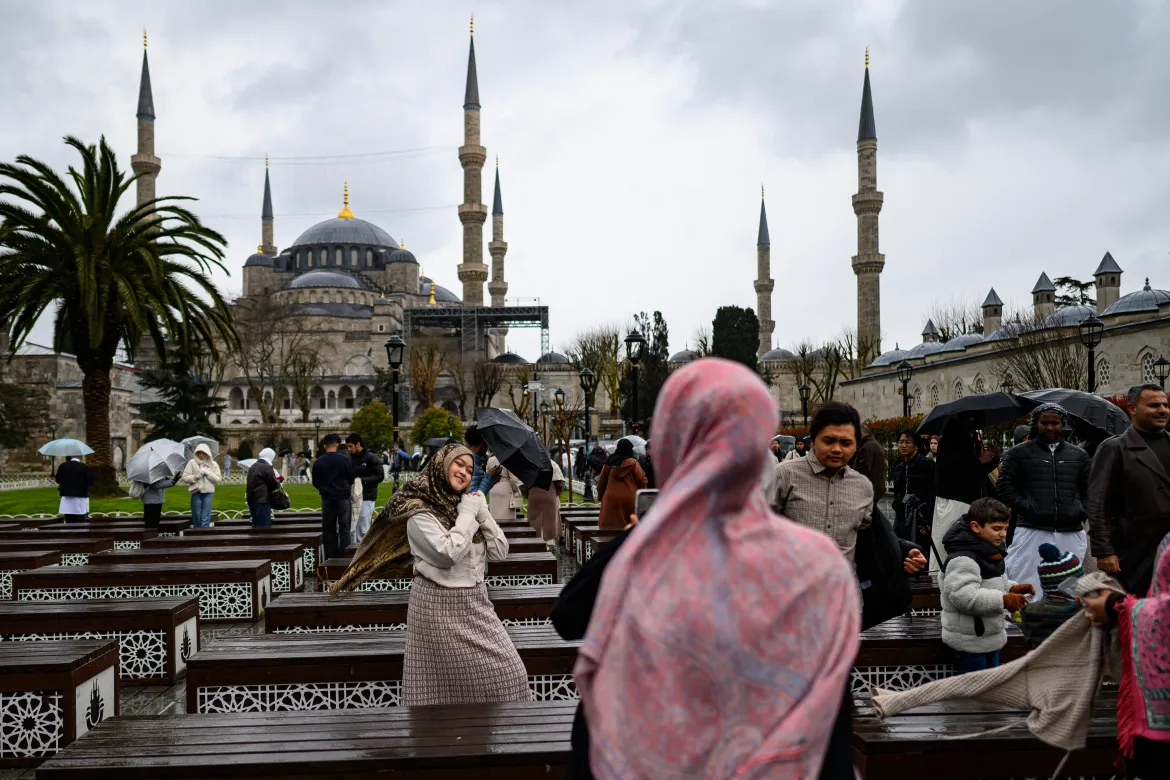 বিশ্বখ্যাত ইস্তাম্বুলের ব্লু মস্ক বা নীল মসজিদে ঈদুল ফিতরের নামাজে ঢল নামে হাজারো ধর্মপ্রাণ মানুষের। ছবি: এএফপি।