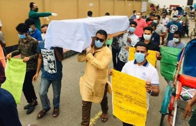 বিনা চিকিৎসায় মৃত্যু, প্রতিবাদে সিলেটে কফিন মিছিল